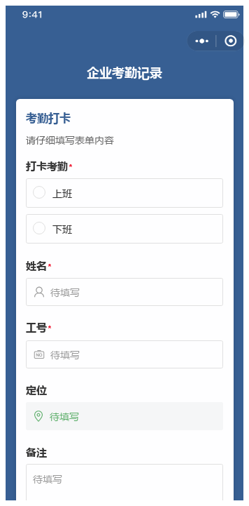 自动获取当前位置(可开启地理围栏限制,仅允许在指定区域打卡);